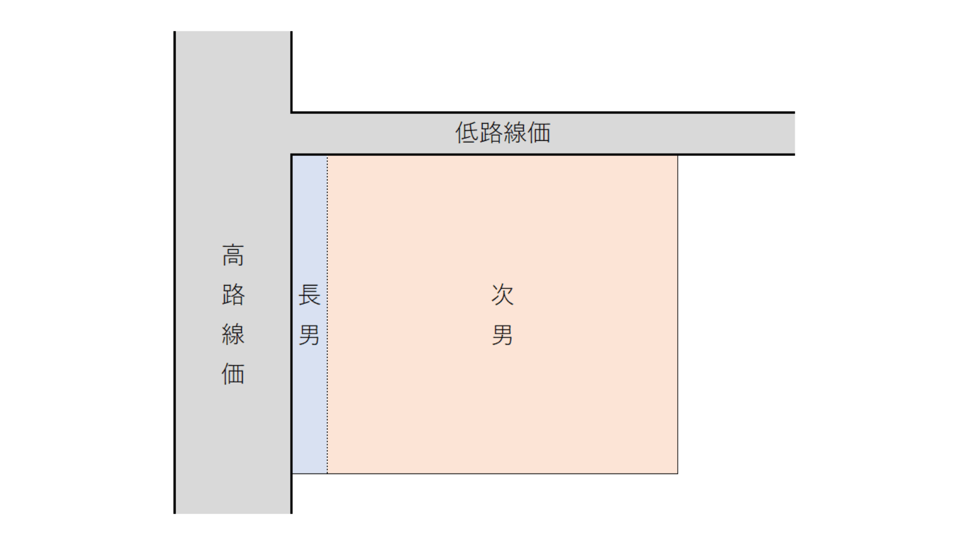 これを「分筆」と言いますが、この分筆により、長男が相続する土地と次男が相続する土地が明確に分けられる、ということになります。