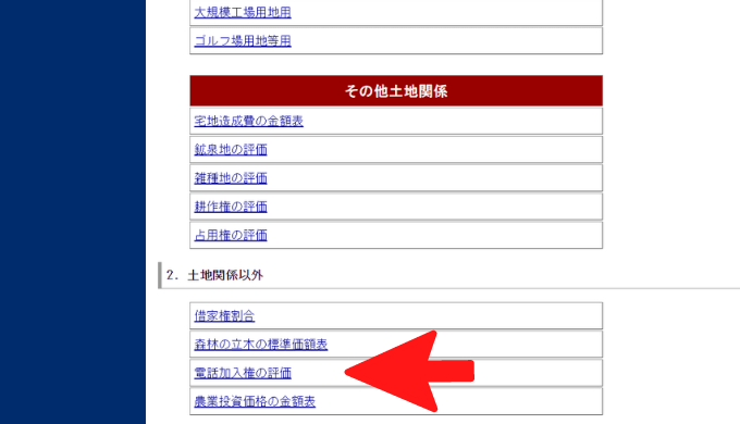 この下の方の「土地関係以外」というところに、「電話加入権の評価」があります。
