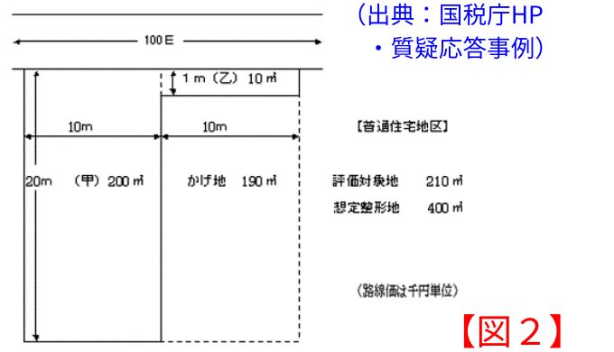 上図のような不整形地の場合には、「甲」(左)と「乙」(右)に分けて評価します。